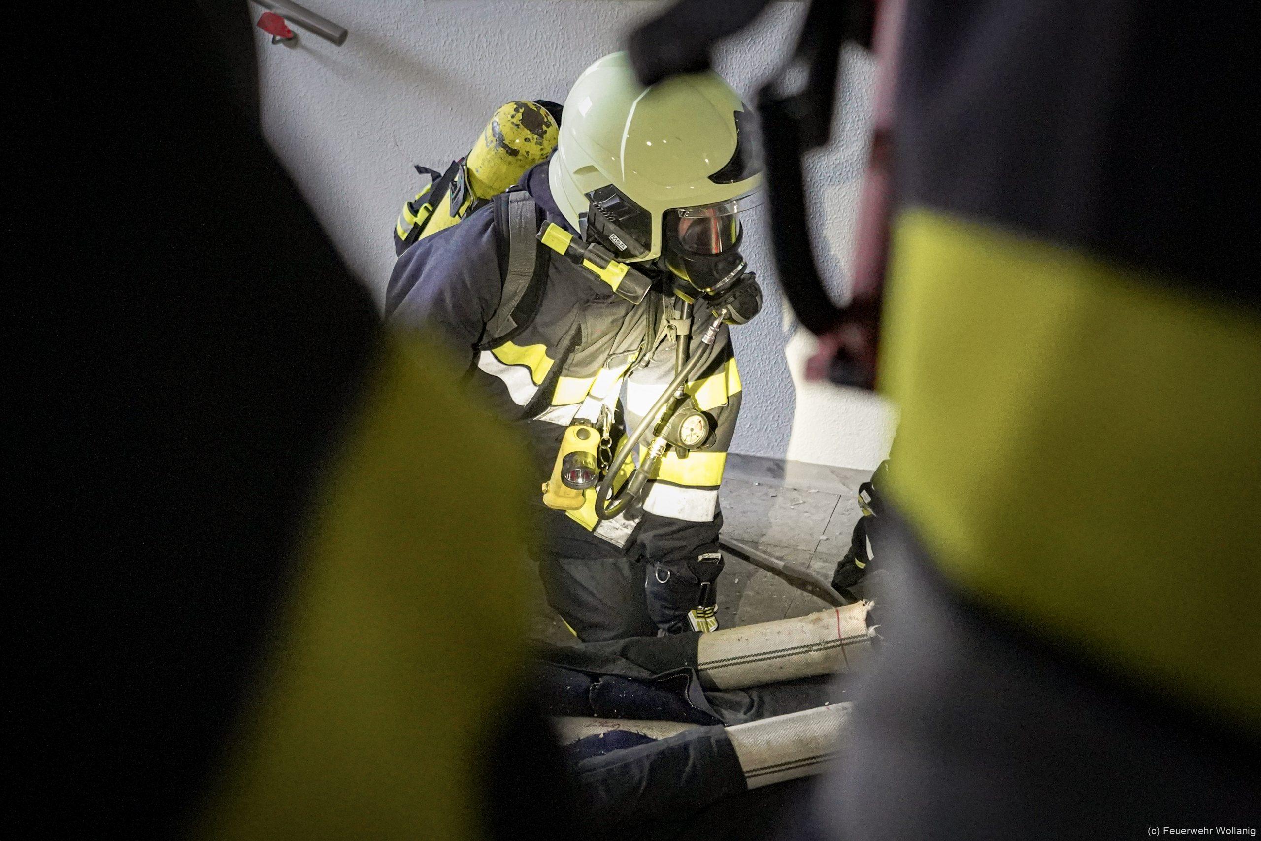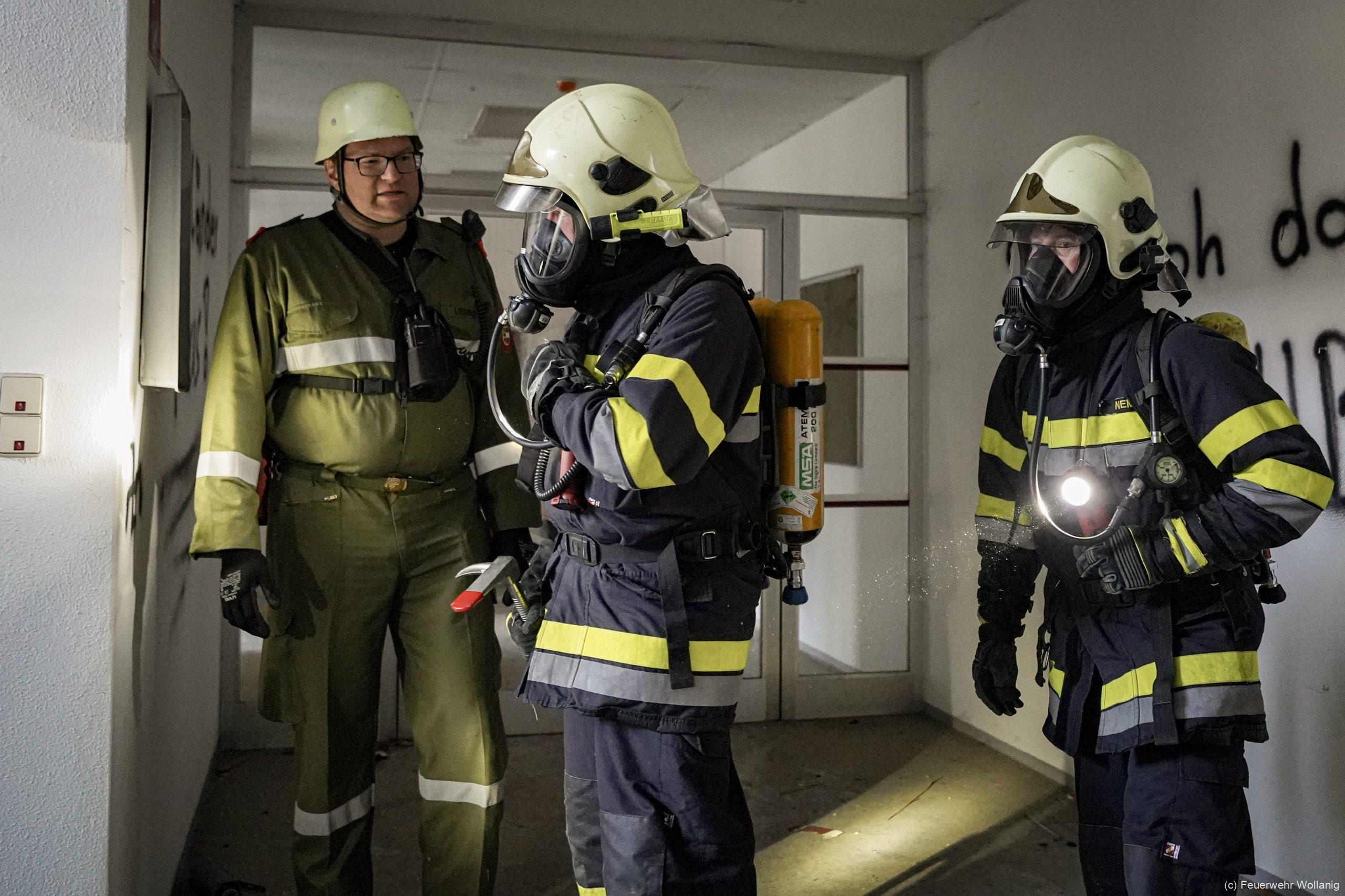 Im Inneren des Gebäudes begann umgehend die Suche nach der vermissten Person. Die Bedingungen waren realitätsnah – eingeschränkte Sicht, erschwerte Orientierung und volle Schutzausrüstung verlangten den Atemschutztrupps einiges ab.