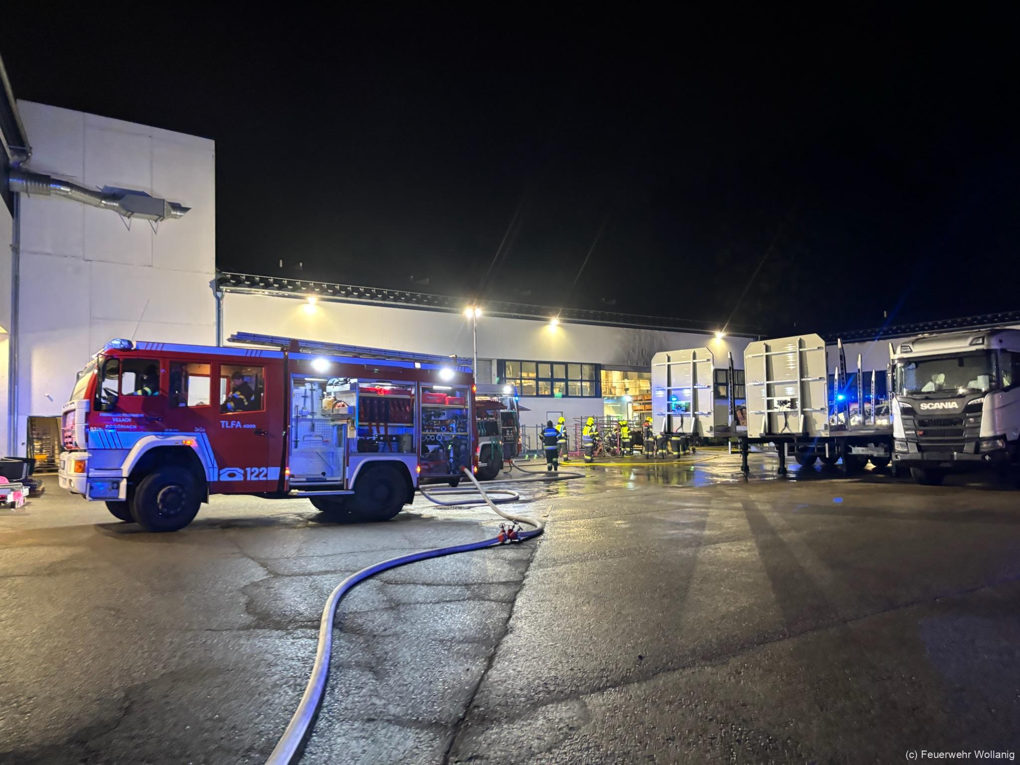 Aufgrund der hohen Brandlast durch Lacke und Lösungsmittel sowie der starken Rauchentwicklung wurden über die Leitstelle Villach weitere Kräfte angefordert.